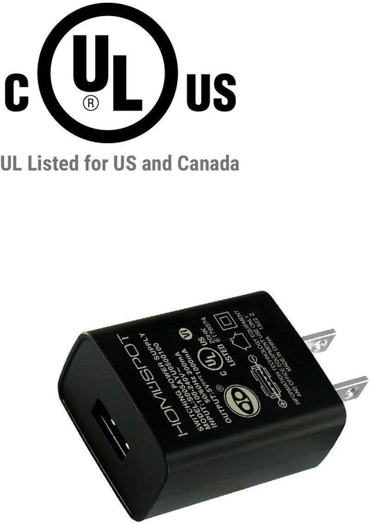 UL Certified USB Wall Charger Power Supply 5V1A (1000Ma) Universal Portable Travel Power Adapter Plug Block High Speed for Iphone Ipad Ipad Samsung HTC LG Ipod Nokia Travel Office Home Use